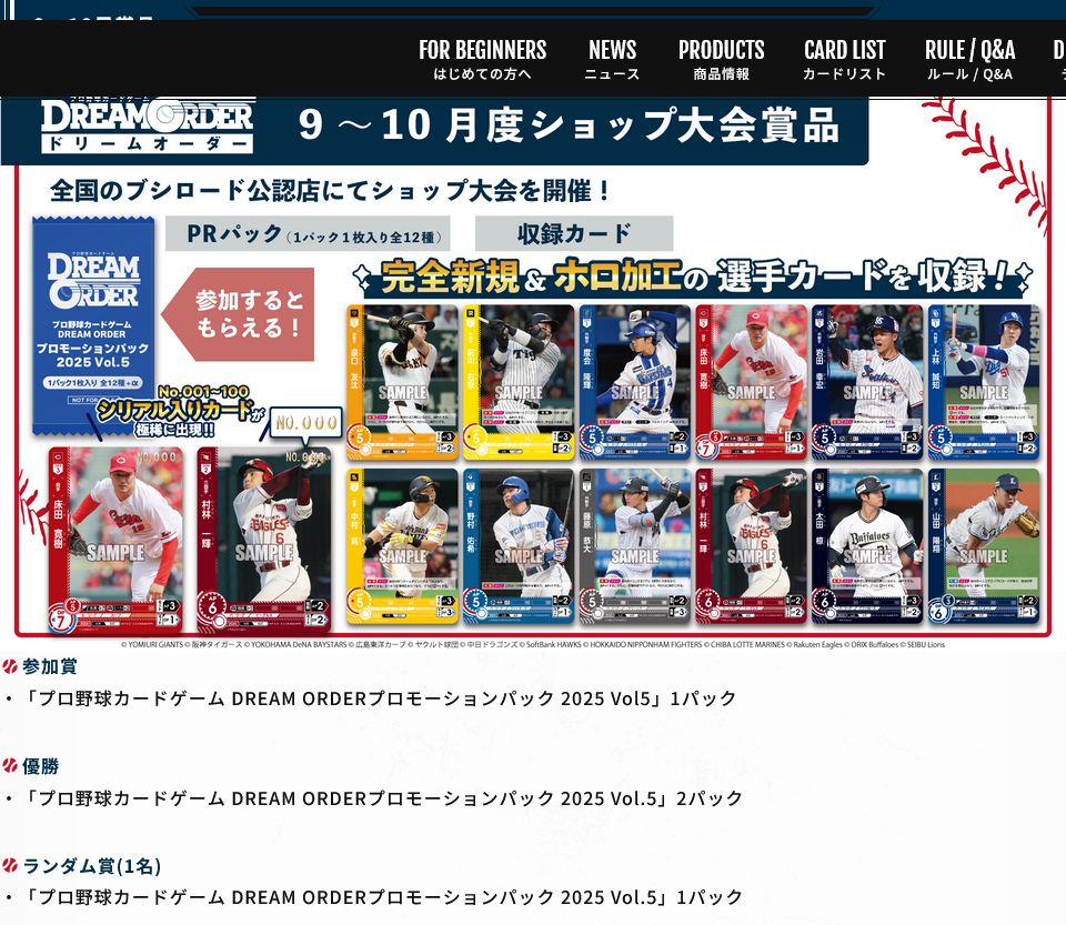 10/24(金)15:00~ドリームオーダー 球団限定ショップ大会 DREAM ORDER